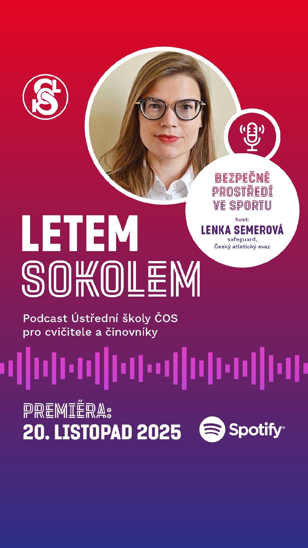 Jedenáctý díl sokolského podcastu Letem Sokolem se zaměřuje na to, proč je důležité budovat bezpečné prostřední ve sportu. Hostem bude Lenka Semerová, safeguard Českého atletického svazu. Pusťte si nový díl ve čtvrtek 20. listopadu na Spotify nebo YouTube.