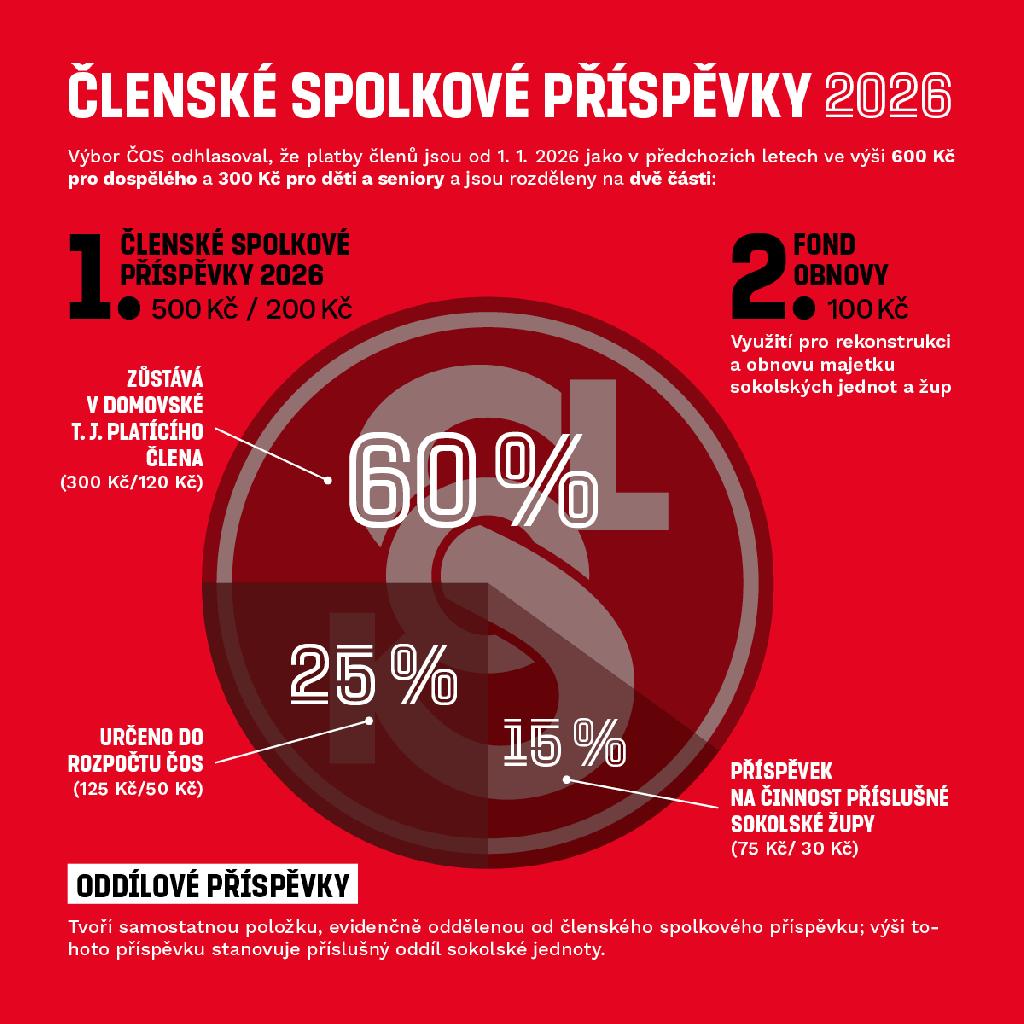 Česká obec sokolská v souladu s čl. 4, odst. 4.8 Stanov ČOS připomíná všem členům blížící se termín pro úhradu členského spolkového příspěvku na rok 2026.